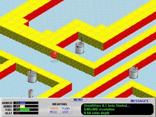 What is it?DroidWars is the reference game being developed primary to test and demonstrate the GridSlammer game engine. It is a basic maze hunting shoot-em-up type game, but could easily be expanded to do some really cool stuff. Eventually, I want to use GridSlammer to develop a massively multi-player game with a network of 'worlds' scattered around the net. This game could be a good jumping off point for that project. The GridSlammer tool kit is included with the DroidWars sourcecode. In fact, it is currently the only way to get the GridSlammer kit. At some point it will be split off into its own package, but for now there is just the one.OK, So What Does it Look Like?You want screenshots? We got screenshots! DroidWars has been developed to run in 640 x 480 resolution, either in full screen mode or as a window. Click on the images shown below to see the full resolution screen snapshots.